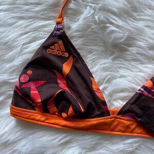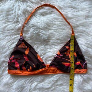 Y2K Adidas Brown and Orange Floral Halter Strappy Bikini Top