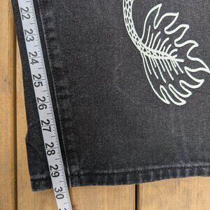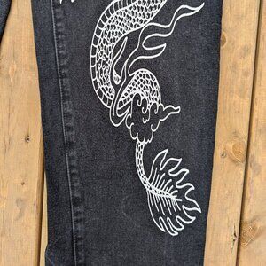Y2K Aesthetic Black Denim Wide Leg Jeans with White Dragon Graphic Print