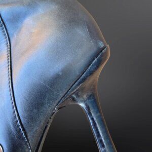 * Y2K Aldo black leather pointed toe stiletto boots with snap buttons