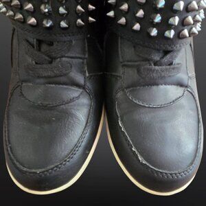 * Y2K Aldo spike studded black faux leather wedge sneaker ankle booties women's size 8.5