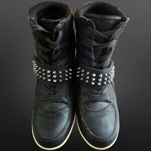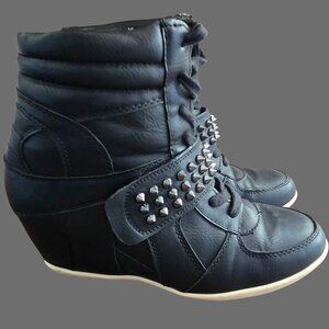 Y2K Aldo Black Studded Wedge Sneakers Ankle Boots Size 8.5 Indie Sleaze Emo