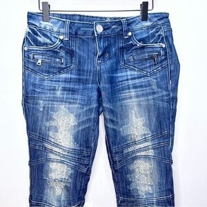 Y2K Almost Famous Distressed Skinny Moto Jeans Size 7