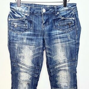 Y2K Almost Famous Distressed Skinny Moto Jeans Size 7