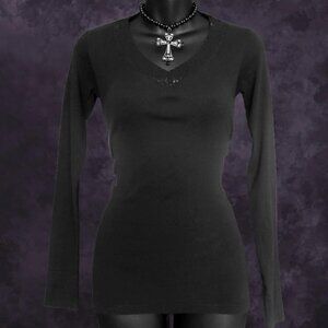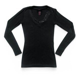 ♡︎༺☆Y2K vintage 00s ANXIETY sequin v-neck long-sleeve sparkly mcbling baddie minimalist basic essential full-length longline top☆༻♡︎