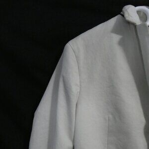 It features a sleek, tailored fit with two front pocket flaps (faux pockets) and a chest pocket (faux ) for added style. Inside coat lining has 2 pockets and a pen holder