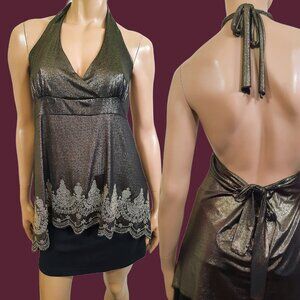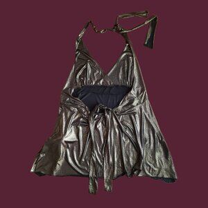 Y2K Babydoll Halter Top Bronze Glitter Metallic XL Party Cocktail Going Out Top