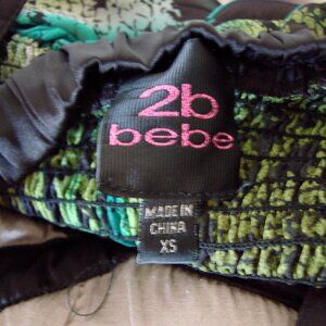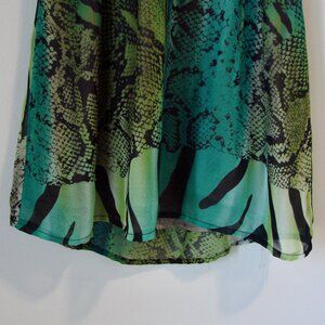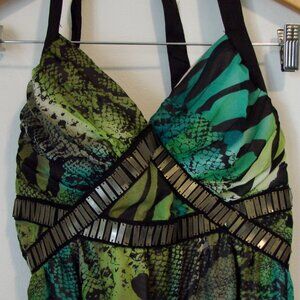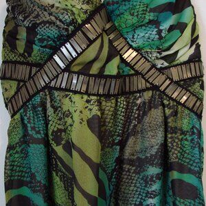 Y2K Babydoll Mini Halter Dress Top 2B Bebe Fairy Animal Print Green Black ~ Size XS ~ Shell: 100% Polyester. Lining: 65% Rayon, 35% Polyester