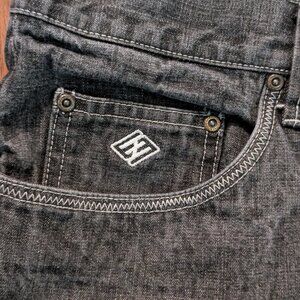 Y2K Baggy Embroidered Enyce Black Stonewashed Denim Jeans - Size 32x32