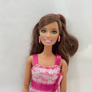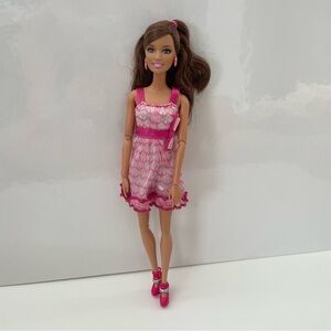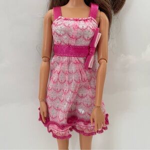 Y2K Barbie Fashionstas Girly Doll Pink Dress Brown Hair