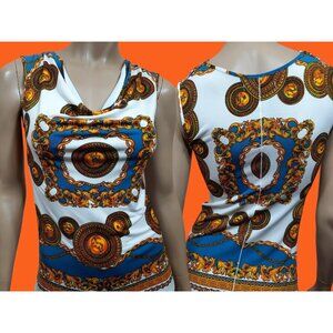 Y2K Baroque print Sleeveless Top Cowl Neck Stretch chain Print Top Size XS S