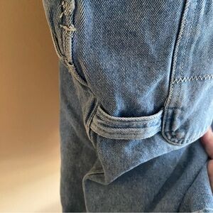 Y2K Basic Concepts Blue Denim Short Bib Carpenter Overalls Woman Large Coquette
