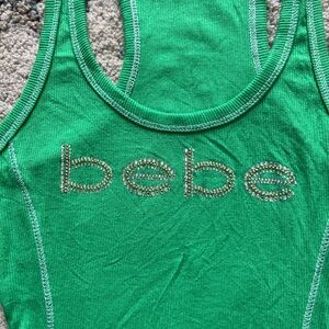 Y2K Bebe Rhinestone Green Ribbed Tank