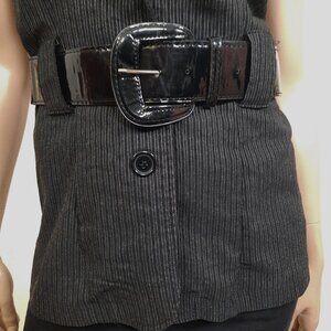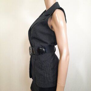 Y2K Belted Vest Waistcoat Black Pinstriped Size L Office Siren Corpcore