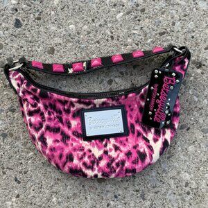 Y2K Betsey Johnson Betseyville Shoulder Bag - Pink Animal Print Studded Strap