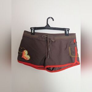 y2k billabong shorts, rasta logo surfwear, vintage board shorts, festival micro shorts, 2000s aesthetic, beachwear y2k, early 2000s swimwear