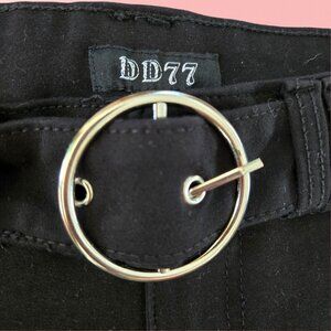 Y2K Black Bootcut Stretch Pants With Belt Round Buckle Womens Size S Mid Rise
