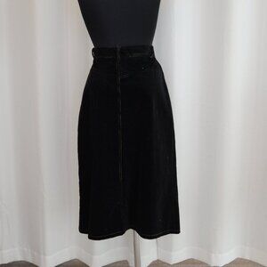 Y2K Black Corduroy Heart Patch Midi Skirt Sz 2