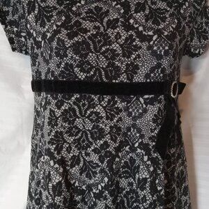 Y2K Black Faux Lace Jersey Knit Girls Size 14 Dress Stretch Goth Party George