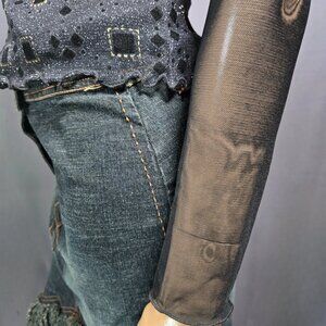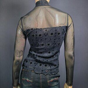 Y2K Black Glitter Mesh Top Flocked Velvet Size S Whimsigoth Goth Grunge