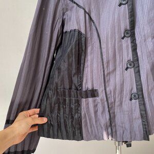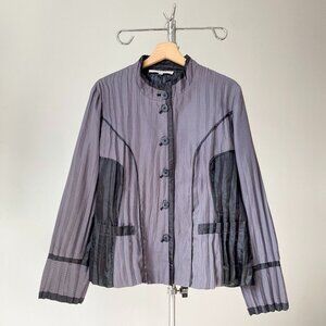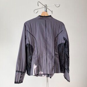 🍂 Y2K Black & Gray Pleated Structured Mao Neckline Oriental-Inspired Button Down Shirt by Ness