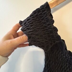 Y2K Black Off The Shoulder Smocked Size Medium Top Velvety Terry Cloth Ruching