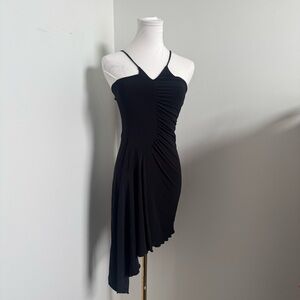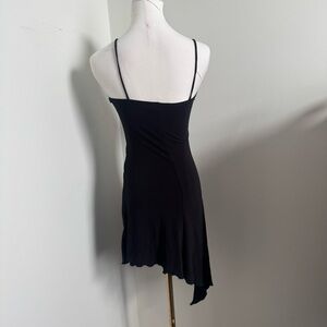 Y2K Black Ruched Asymmetrical Mini Dress Spaghetti Strap Fairycore S