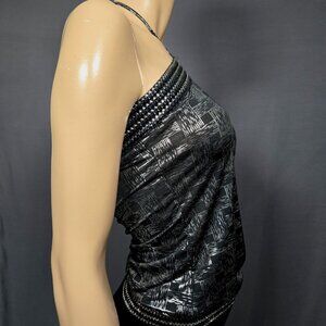 Y2K Black Silver Halter Top Womens Size S Metallic Trashy Mcbling 2000s