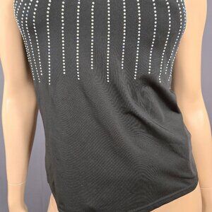 Y2K Black Sleeveless Rhinestone Top Size M Going Out Top Glitter Mcbling