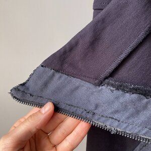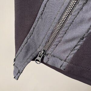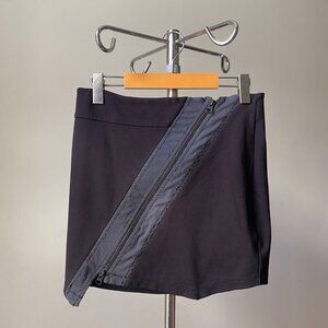 Sleek black Y2K mini with a diagonal zipper and body-hugging stretch fit. Originally trimmed with faux leather along the zip — some remnants remain, giving it a cool grunge feel.