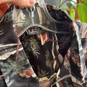 Elevate your style with this Black Tropical Print Men's Shirt. Featuring a vibrant design, this shirt is perfect for casual outings. Enjoy comfort and fashion. Pit to pit 22” Length 30”