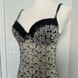 Y2K Black and White Floral Lace Slip Dress Goth Whimsy Fairycore Sheer S