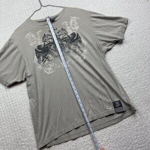 Y2K Burnside Men Shirt L Grey Affliction Goth Grunge Cross Wings Skater