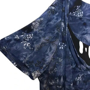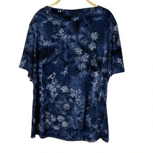 Y2K CLAIRE FRANCE.Blouse,2X blue,floral,glitter,business casual,scoop,twofer