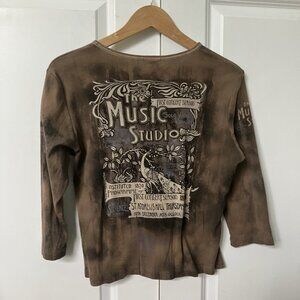 Y2K Cactus T-shirt Womens Brown Graphic 2000s Grunge Music Studio Rhinestone