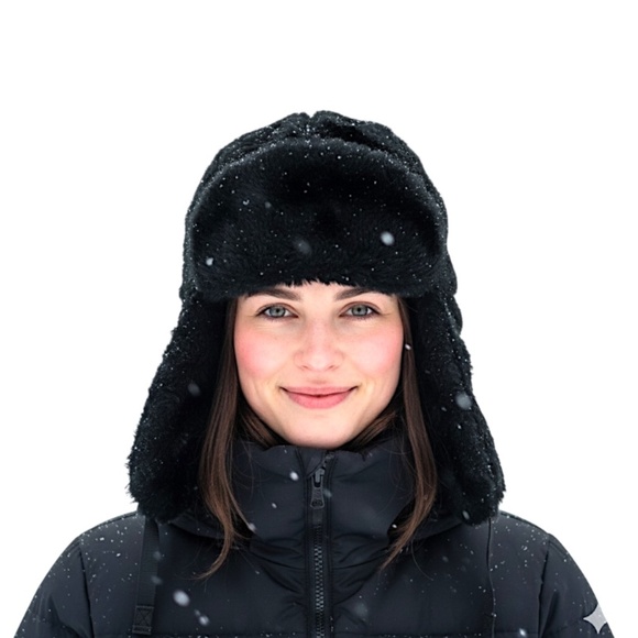 Y2K Canadian made black faux fur warm Yukon trapper winter ear flap hat 7 1/8