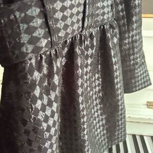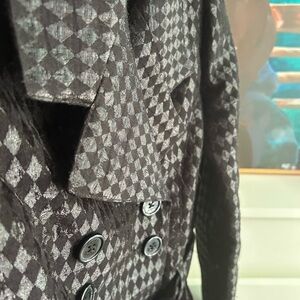 Stylish trench coat with glossy houndstooth pattern. Double-breasted with a belted waist. Perfect for fashionable outings. Some pulls. In good condition.