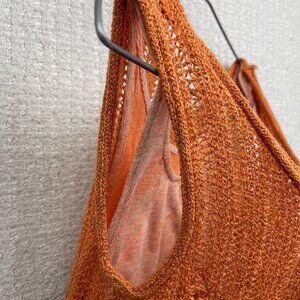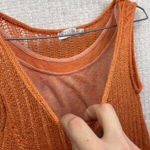 Y2K Caty Lesca Paris Crochet Knit Boho Layered Festival Top Orange Wom Sz 2