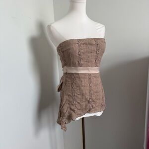 Y2K Charlotte Russe Strapless Mesh Lace Top – Mocha, Satin Waist Fairy Whimsy L
