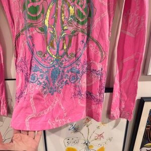Y2K Christian Audigier Pink Graphic Long Sleeve Tee - size M