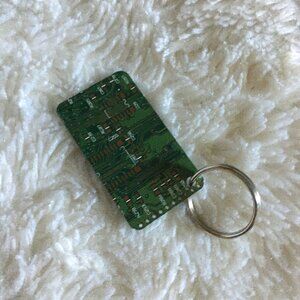 Good preowned vintage condition green circuit board keyring. Business and phone number is on the opposite side, but could be modified or covered with a sticker/decal for a unique look. I can't remember if this is from the 90s or Y2K. Very matrix-esque, slice of cyberpunk.