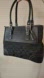 Black on Black, signature jacquard C logo canvas with black leather accents. snap button closure at the edges to make less or more space as needed in the bag. has silver colored foot posts & accent hardware. zipper closure