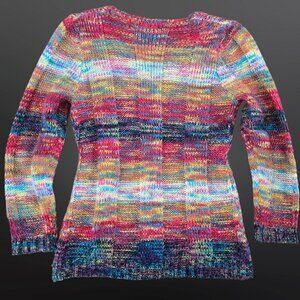Y2K Colorful Rainbow Fairy Sweater Size M Boho Marled Striped Pockets Hip Length