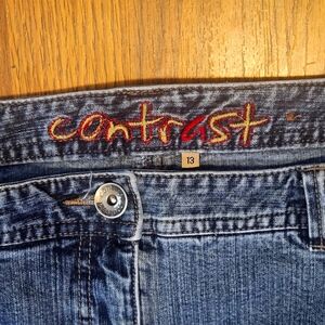 Step back into early 2000s style with these authentic Y2K Contrast wide leg jeans! Sized as a women’s US 13 (not juniors), these vintage jeans feature a flattering mid-rise with a bootcut silhouette that adds both comfort and flair to any outfit. be sure to read measurements to ensure proper fit