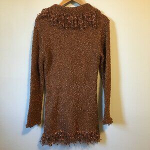 Very good preowned Y2K vintage condition, rusty brown fuzzy, fringed, unique knitted cardigan by BH Jeans. This piece is straight out of the Y2K era and is in great condition for its age. Love it. Giving Grizabella the Glamour Cat vibes.