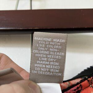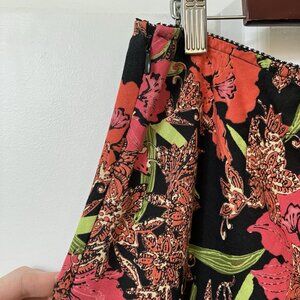 Y2K Croft & Barrow Midi Skirt Womens 18 Linen Black Red Floral Hibiscus Flared