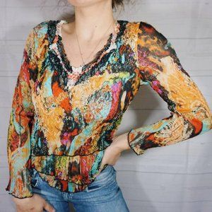 🍓ABOUT: Bright Multicoloured y2K Wrinkle long sleeve with layers and bead work at bust. Save The Queen vibes! Lightweight stretchy material.