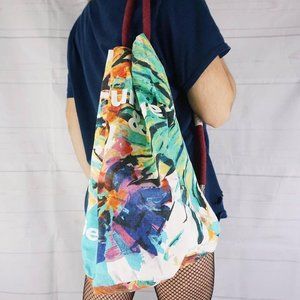 🍓ABOUT: Y2K Rainbow floral Desigual canvas shoulder bag backpack. Over the shoulder fabric straps and cinching closure. Perfect for yoga or a statement bag!