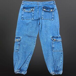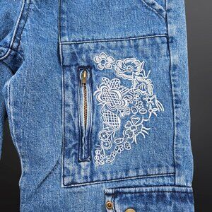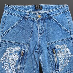Y2K Denim Capri Cargo Pants Jeans Embroidered Flowers Size 2 Fairy Boho Low Rise