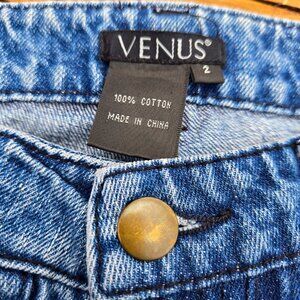 * Y2K Venus denim capris cargos with white floral embroidery and studs on the pocket flaps