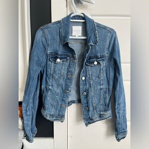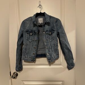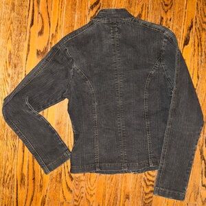 Chic gray denim jacket with stylish stitching. Ideal for everyday wear. Cute Y2K moto inspired style. Could be worn as top or jacket.